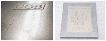 COB(Chip On Board)マスクは、その名の通りチップが実装された状態の基板に対して印刷できるマスクです。通常のマスクでは実装済み部品が干渉して印刷できない場合がありますが、COBマスクではマスク側に適切な逃げや段差形状を設けることで、部品を避けながら必要な箇所にのみペーストを転写することが可能です。