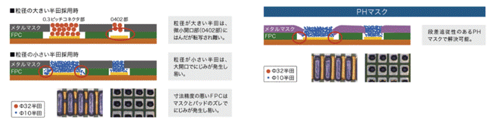 その特性を活かし、フレキシブル基板(FPC)やセラミック基板など、精密かつ微小な印刷が求められる場面で効果を発揮します。